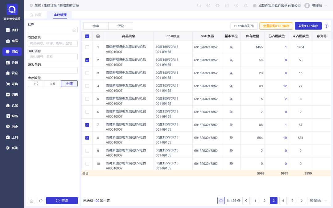 支持库存初始化、库存查询、库存对比三个功能整合到一起到“库存管理”操作。