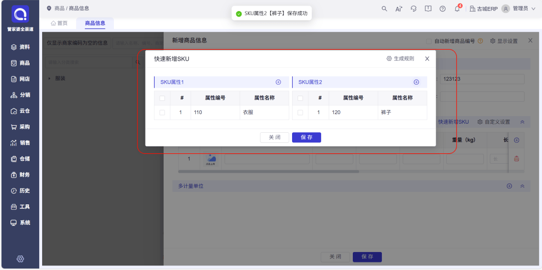 企业版SKU信息支持按照表格形式展示,支持快速新增SKU。