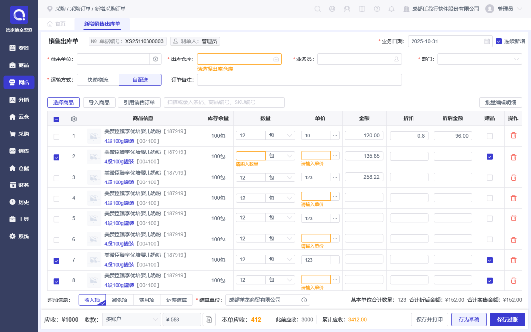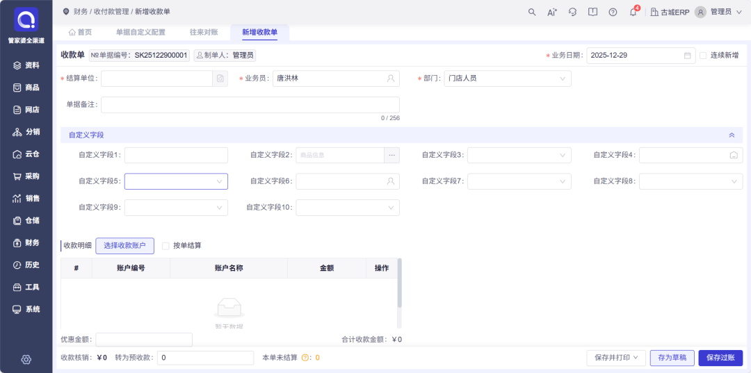 开单支持批量编辑商品明细功能,导入商品表格,多账户收款支持自定义填写金额。